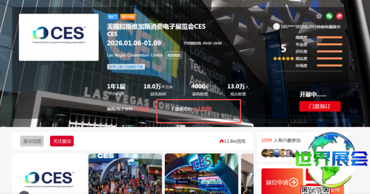 美国CES 2026的门票预订即将截止,若想亲临现场观摩这一全球行业顶级展会,请抓紧最后时间订票!可通过小程序搜索“中欧世界展会网”进行门票预订哦~