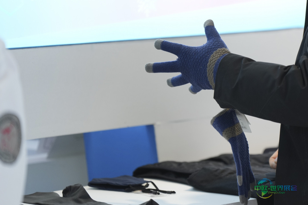 1月6日,在2026哈尔滨国际冰雪经济博览会的展馆内,一位观众正在体验一副采用石墨烯技术的保暖手套。