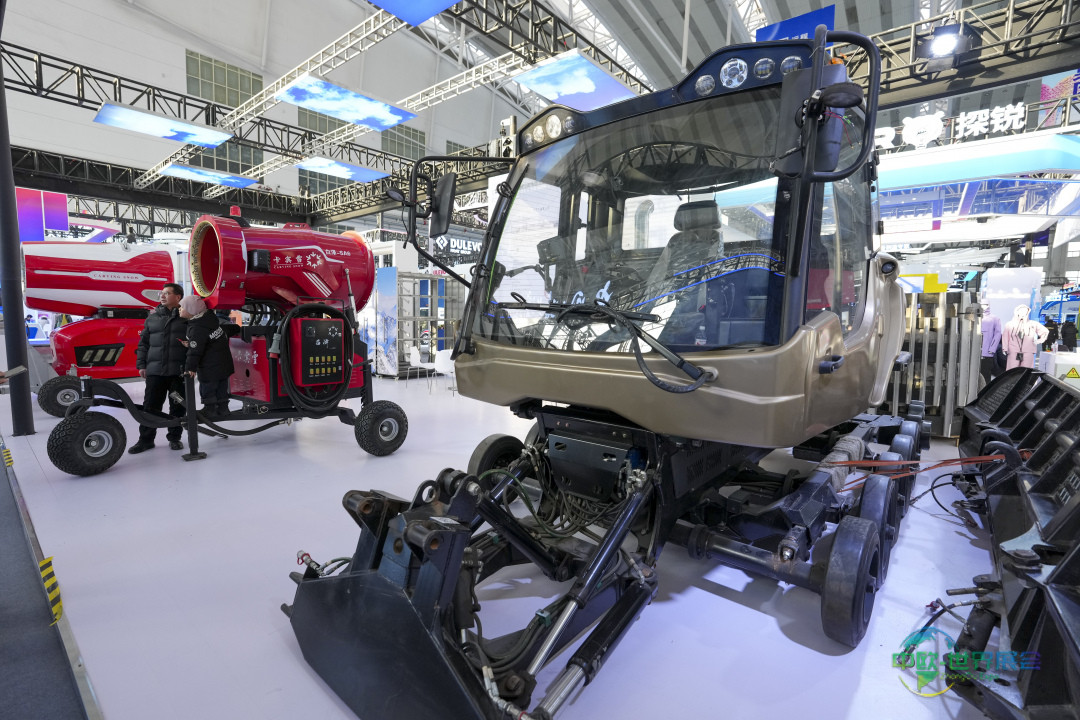 图为1月6日在2026哈尔滨国际冰雪经济博览会上展出的雪地履带车。
