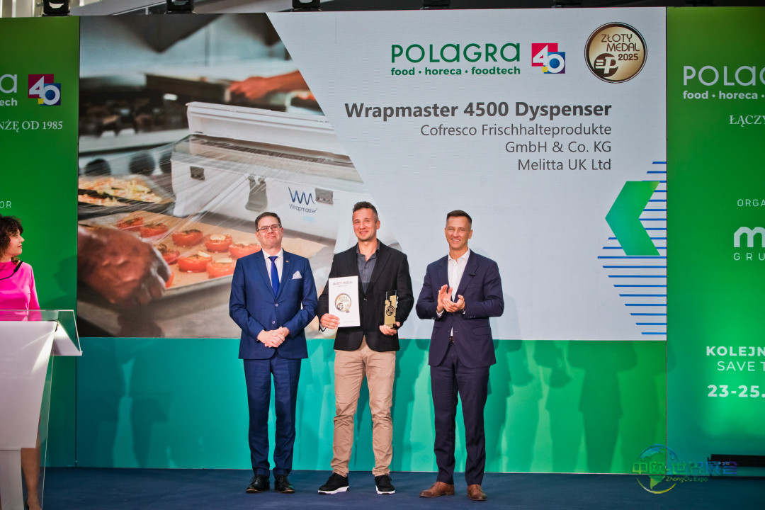 竞赛评委会还表彰了由Melitta英国有限公司申报的Cofresco保鲜制品公司Wrapmaster 4500型设备。这款45厘米宽的分配器是大型厨房的理想选择,可高效处理大量食品保鲜膜、烘焙纸等材料。