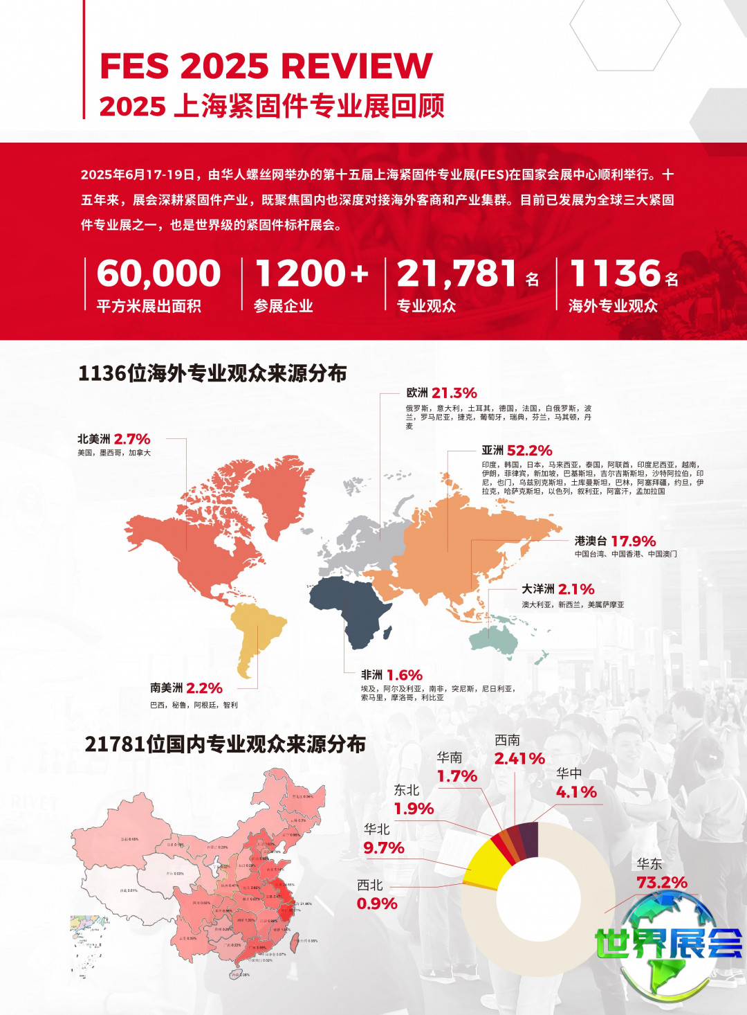 作为全球三大紧固件专业展览之一!上海紧固件专业展览会FES(Fastener Expo Shanghai)以打造全球高端紧固件产业创新平台为全新定位,已跻身全球三大紧固件展会行列,同时也成为中国乃至世界紧固件行业发展的风向标。