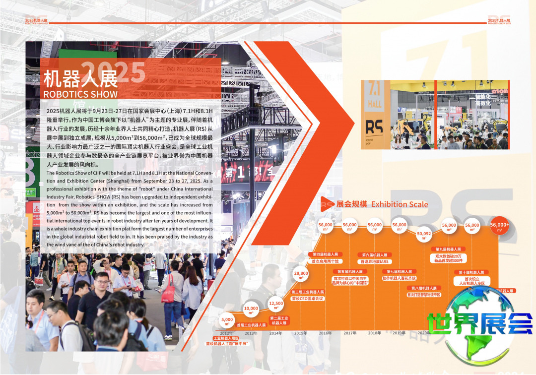 作为中国工博会旗下以“机器人”为主题的专业展览,伴随机器人行业的进步,上海国际机器人展览会(RS)从展中展发展为独立展览,已成为全球规模最大、行业影响力最广泛的国际顶级机器人行业盛会之一;是全球工业机器人领域参与企业数量最多的全产业链展览平台;被行业公认为中国机器人产业发展的风向标。