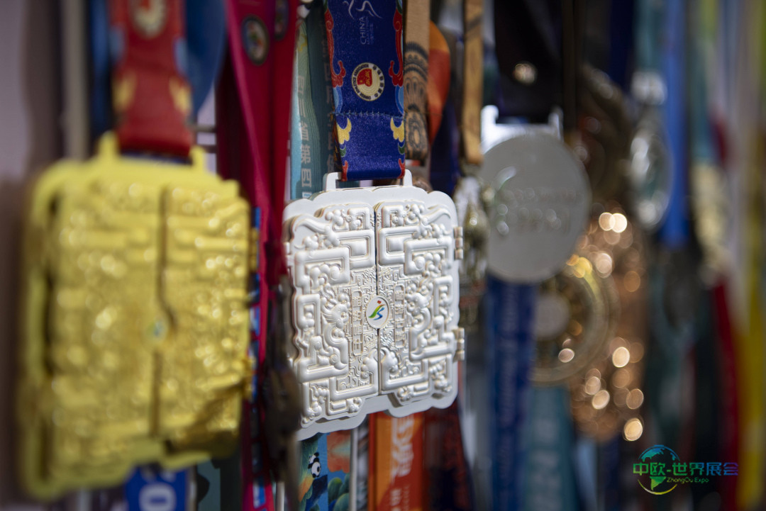 1月8日,一家奖牌制造商在博览会上陈列了多款马拉松赛事奖牌。 新华社记者 魏培全 摄