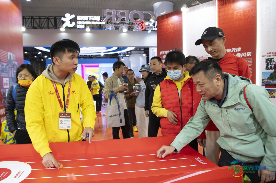 1月8日,厦门马拉松参赛者在博览会现场体验互动游戏环节。 新华社记者 魏培全 摄