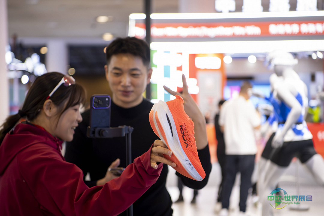1月8日,一家体育用品生产商在博览会上展示其马拉松相关产品。 新华社记者 魏培全 摄