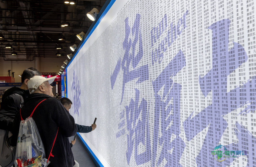 1月8日,参与厦门马拉松赛的运动员在博览会设立的跑者姓名墙上查找自己的姓名。 新华社记者 魏培全 摄