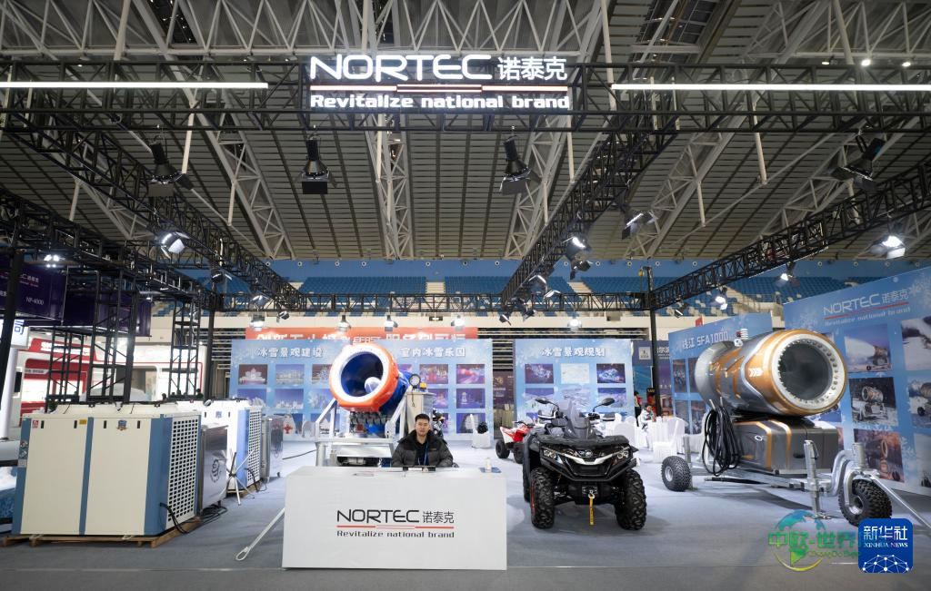 1月6日在2026哈尔滨国际冰雪经济博览会拍摄的冰雪设备展区中的一个展位。