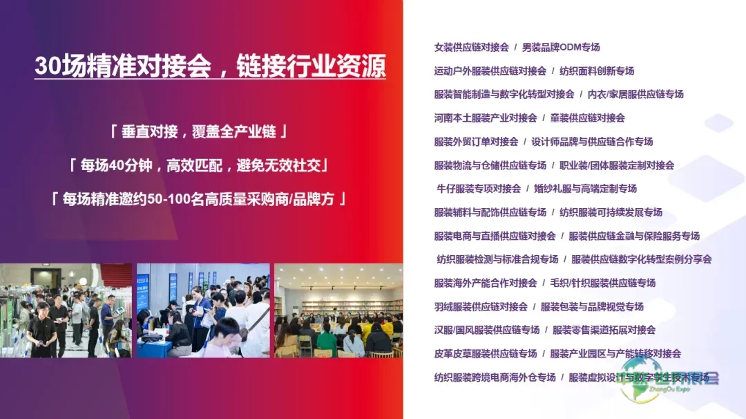 本次活动创新性地采用了“会议、展览、时装秀、演出、学习、商贸”六位一体的融合模式,不仅将集中展示行业最前沿的产品与技术,还将组织超过30场精准高效的产业对接会议,有力保障参展商获得“实实在在的交易机遇”。大会目标在于汇聚全国行业内的顶尖力量,推动资源的优化整合,促进技术创新与产业链的深度结合,为河南从“纺织服装大省”迈向“纺织服装强省”提供强大动能。