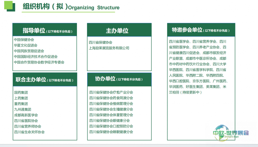 协办及特邀单位:四川省保健协会下属八大专业分会提供学术支撑,另有四川省医学会、四川大学华西医院等超过二十家医疗及产业机构(名单仍在持续增加)深入参与。