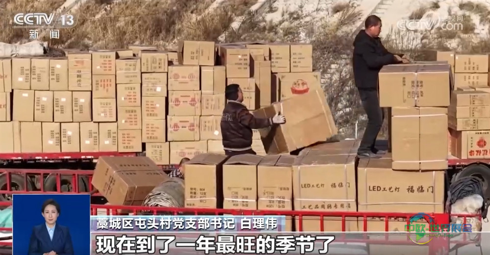 在河北石家庄藁城区屯头村,规模不一的宫灯工厂紧密相邻,前来提货的车辆络绎不绝,呈现出一派热闹景象。