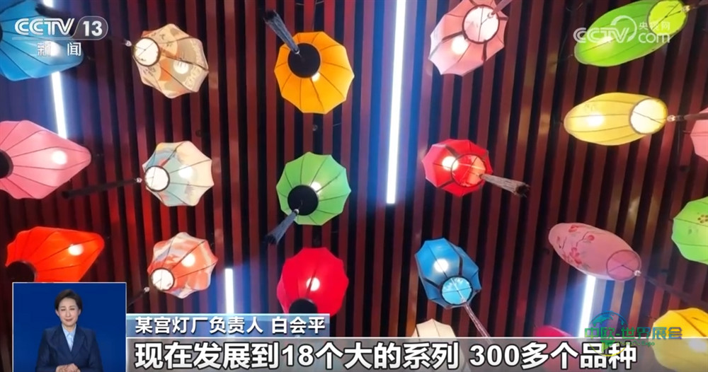 某宫灯厂负责人白会平说:通过与高等院校合作,研发新产品,每年都必须实现新的突破。如今我们国潮风格的灯笼尤其受到年轻消费者群体的青睐。以往我们只有少数几个品种,现已发展至18个大系列、300多个品种,并且能够根据客户需求进行定制。