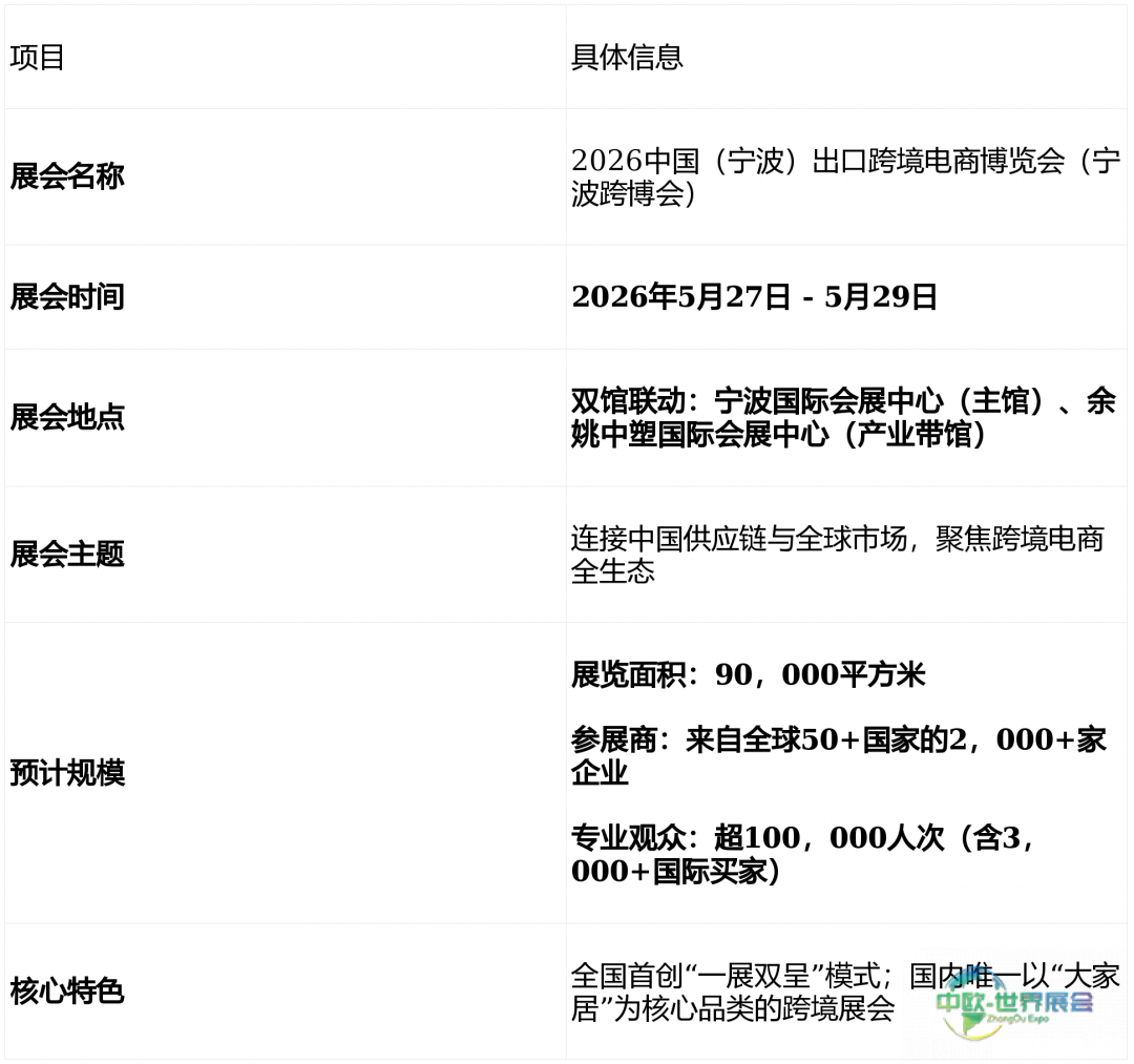 2026年5月27日至29日,让我们相聚宁波,在这场规模与内涵兼具的盛会中,共同解读跨境出海的新规划,连接无限的全球商业机会!