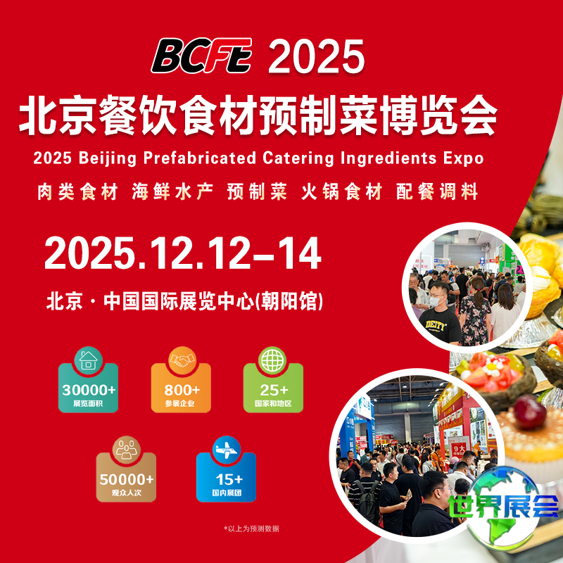 北京餐饮食材预制菜产业博览会(BCFE)预计展览面积将超过30000平方米,吸引来自全球25个国家和地区的800余家企业及15个以上展团参与,专业观众预计突破50000人次。