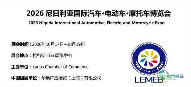 2026年尼日利亚国际汽车•电动车•摩托车博览会(LEMEB)是非洲地区最具影响力的行业盛会之一。它将汇聚全球顶尖的汽车、电动车、摩托车品牌及产业链相关企业,集中展示前沿技术、创新产品与解决方案。参与LEMEB,将是您开拓非洲市场的绝佳机遇,可与行业领导者、政府官员及重要采购商进行直接交流,助力抢占市场先机!