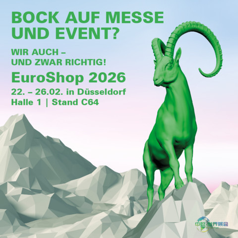 IFES全球村被打造为一个充满活力的联络、创新与国际合作平台,构建了促进交流网络、知识共享与业务发展的动态环境。该展馆为所有希望建立国际伙伴关系、巩固现有联系、探索前沿趋势的参展者提供了核心交汇点。在此背景下,FAIRNET以醒目的山羊主题视觉形象及“钟情会展活动”/“共攀巅峰”的宣传口号亮相。整个展位采用双语策划,旨在吸引EuroShop国际观众的目光。