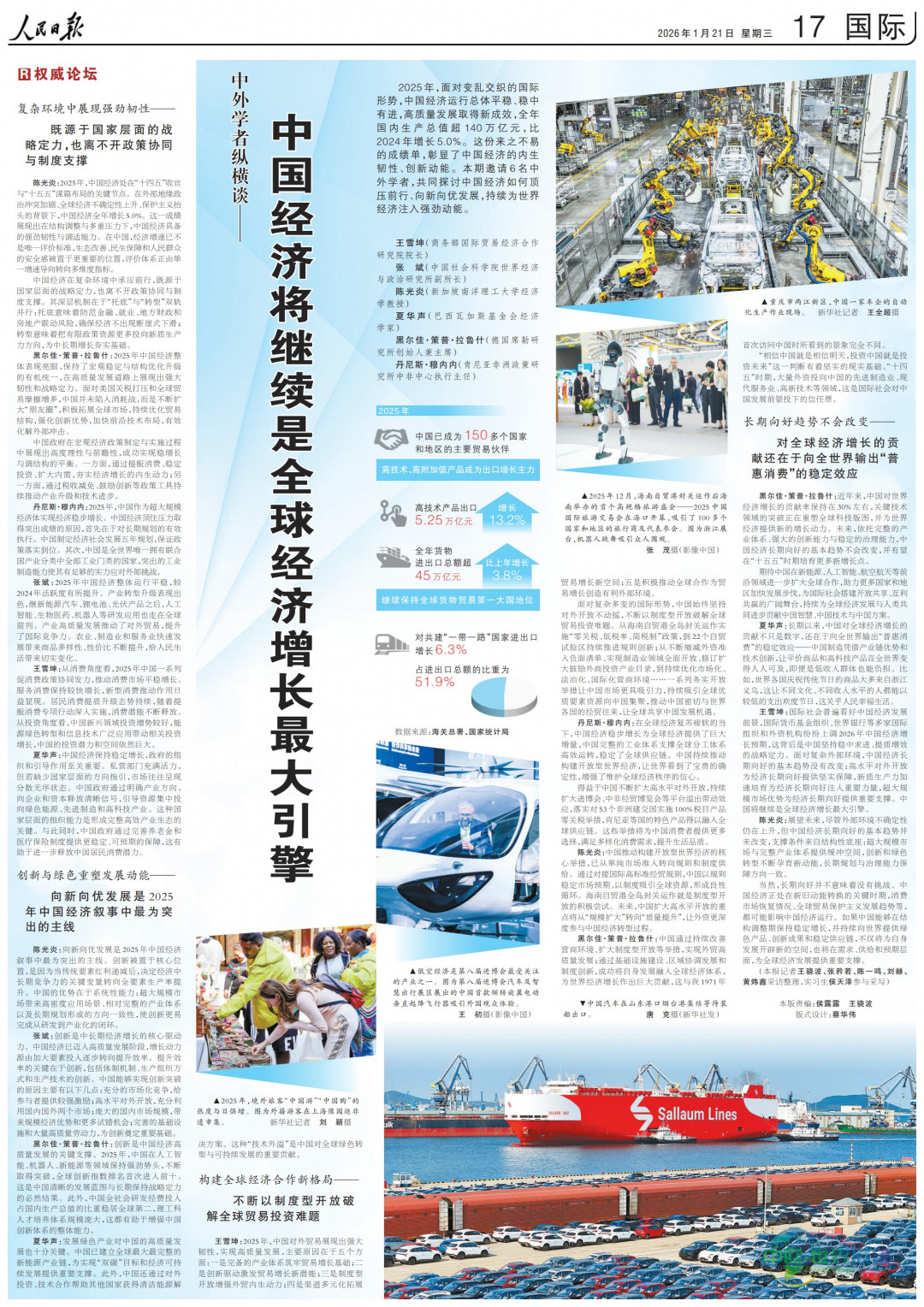 在2025年国际局势复杂多变的背景下,中国经济保持了总体平稳、稳中向好的发展态势,高质量发展取得新的进展。全年国内生产总值突破140万亿元,较2024年实现了5.0%的增长。这份成绩单凸显了中国经济内在的韧性与创新活力。本期邀请了六位中外学者,共同解析中国经济如何在压力下前行,并向新向优发展,持续为世界经济提供强大动力。