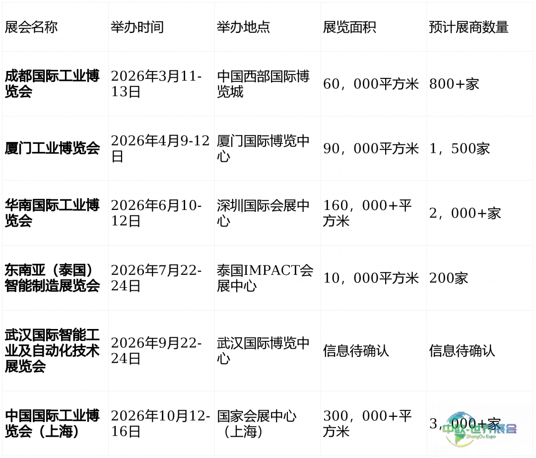 工博会六大展会联动格局构建了一个覆盖主要工业地带与海外市场的完整网络。以下是各展会的具体分布详情: