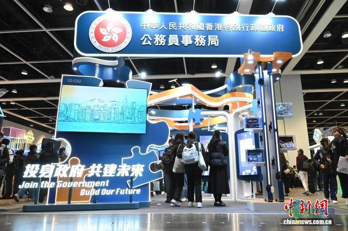 1月22日,香港贸易发展局筹办的第35届教育及职业博览于香港会议展览中心正式启动。来自全球23个国家及地区的超过860家参展机构汇聚一堂,为参观者带来多样化的升学指导和就业机会介绍。图为参观者在香港特别行政区政府公务员事务局的展台前驻足了解。中新网记者 李志华 摄