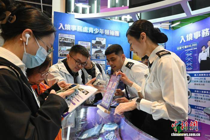 图为参观者在香港特别行政区政府入境事务处的展台前参观。中新网记者 李志华 摄