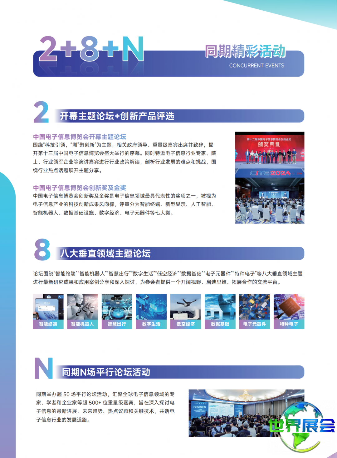 中国深圳电子信息博览会(CITE)同期活动同样丰富多样。博览会邀请海内外知名院士与顶级专家组成顾问团,举办超过50场峰会、论坛等行业活动,超千位演讲嘉宾及学者将围绕热点议题,交流行业见解。