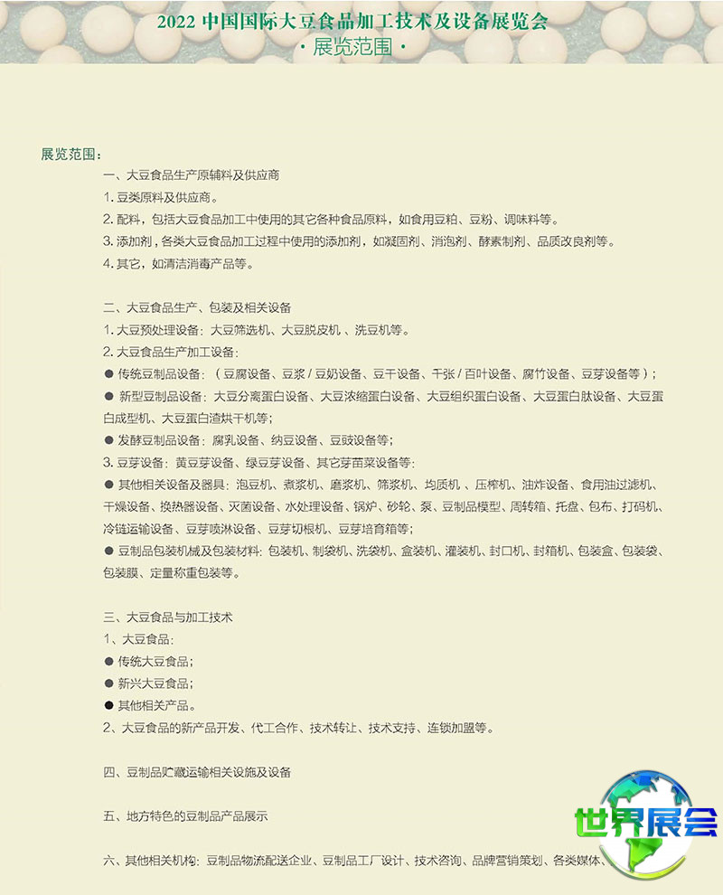 随着中豆展-中国合肥大豆食品及豆制品加工设备展览会的日期临近,为协助食品加工与包装行业的参展商成功预定展位,中欧世界展会网特别准备了一份全面的展位预定指引。