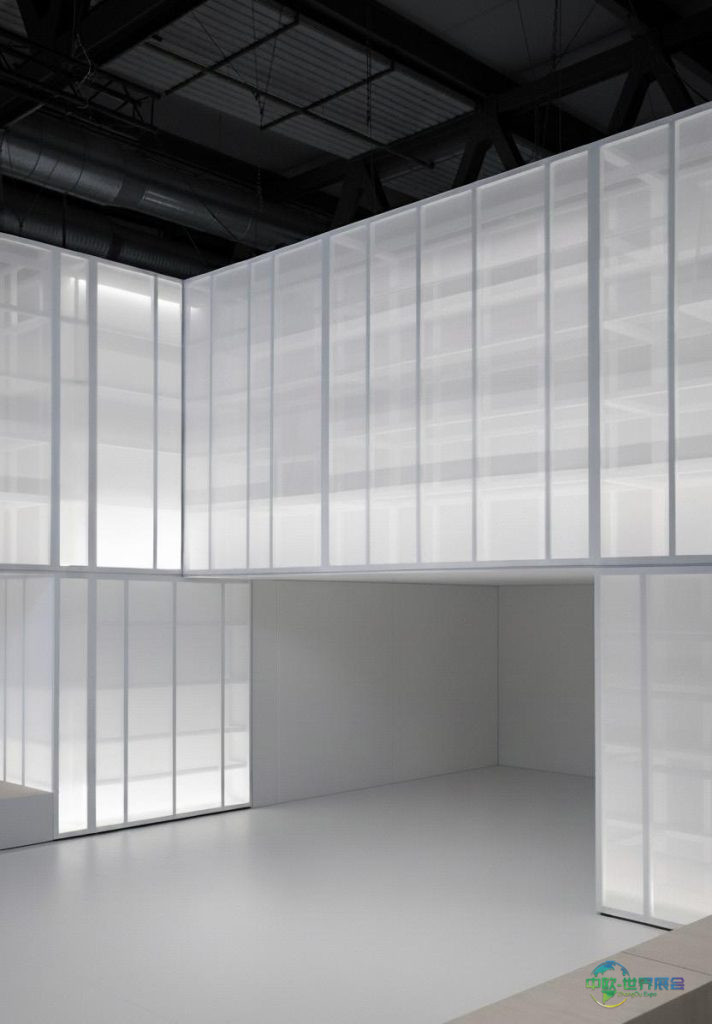 从厨房到庭院,从展廊到工作室,空间在保持清晰度与连贯性的同时顺应展会节奏。建筑意象以半透明结构为基础,这种设计并非追求绝对通透,而是作为柔化光线的过滤器,让人得以窥见内部活动却又不完全显露。