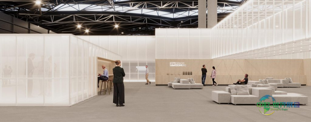 这层通透的帷幕定义了项目氛围:轻盈的外壳柔化了技术元素,梳理了复杂结构,赋予整体和谐统一。模块化结构让每个参展商在保持自身特色的同时,又能融入展馆尺度的统一视觉体系。整体设计旨在打造有序、明晰而充满活力的观展体验,精准契合贸易展需求,避免冗余的复杂性。