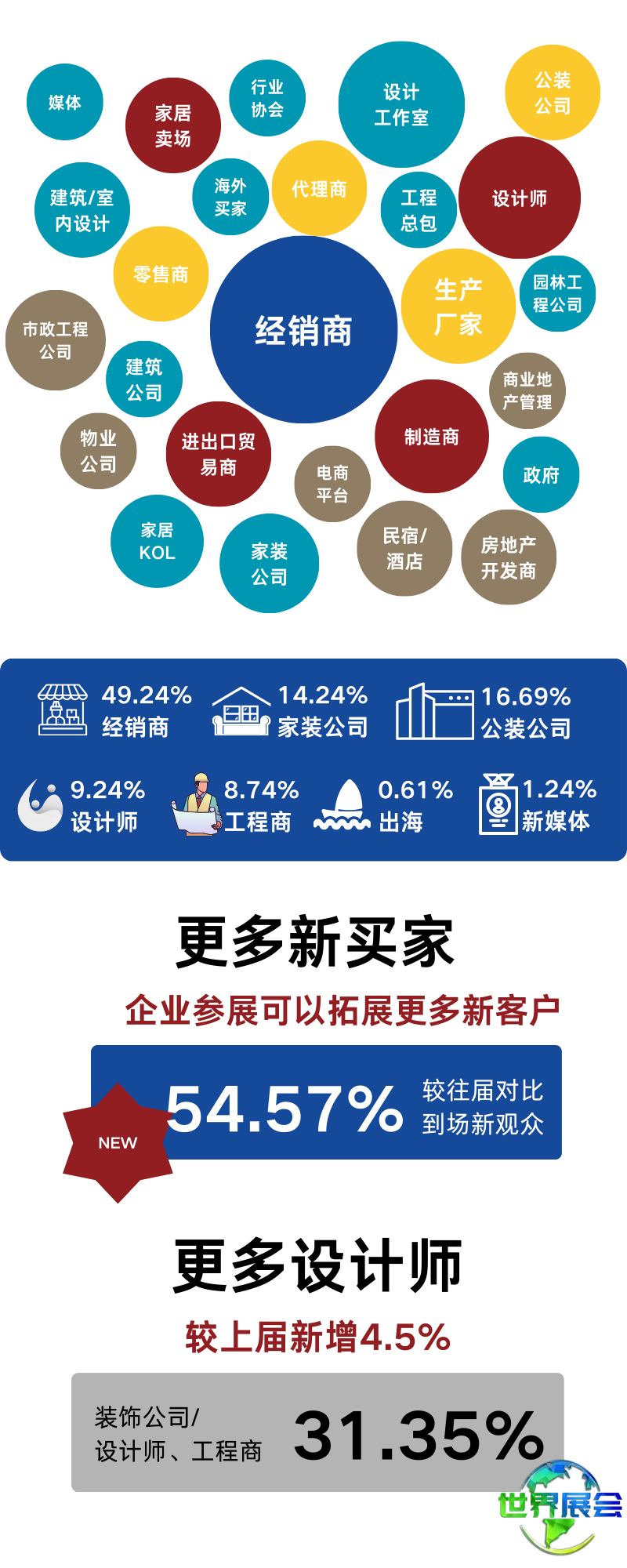 超过10万名全渠道到场专业观众是展会的核心优势,其中超过50%为首次参观的新采购商,涵盖生产厂家、经销商、装修公司、设计师、工程方、出海买家等全链条采购群体。展会创新打造场景化洽谈空间与首届家居工厂直采节,同时联动微信、抖音、小红书、快手、视频号等全域流量平台,全面激活商务对接潜能。