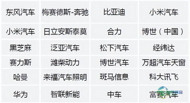 法雷奥、东风研发、现代汽车、赛力斯、比亚迪、立科汽车、安波福、合兴汽车、深蓝汽车、东风商用车、江铃汽车、巴斯巴、极氪汽车、小米汽车、上汽集团、五十铃汽车