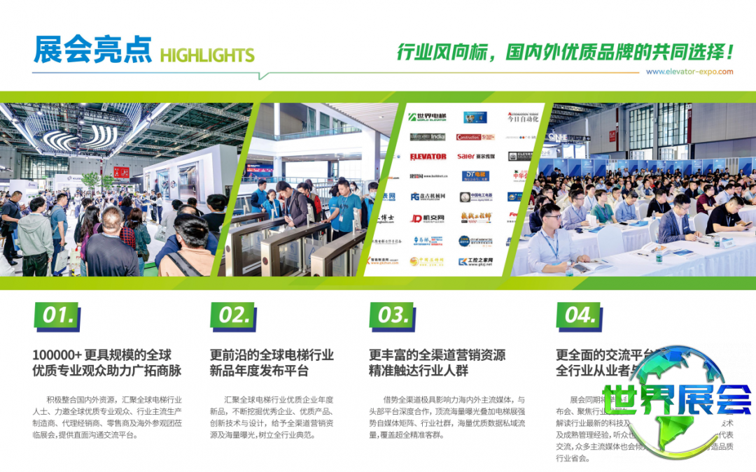 中国国际电梯展览会(WEE EXPO)是全球电梯领域规模最宏大、影响力最广泛的行业展会。该展会由中国电梯协会牵头主办,亦是迄今为止规模最为盛大的一届电梯展览。在国内外参展商、观众及相关各界朋友与同行的鼎力支持下,已发展成为享誉全球的电梯行业顶级盛会。