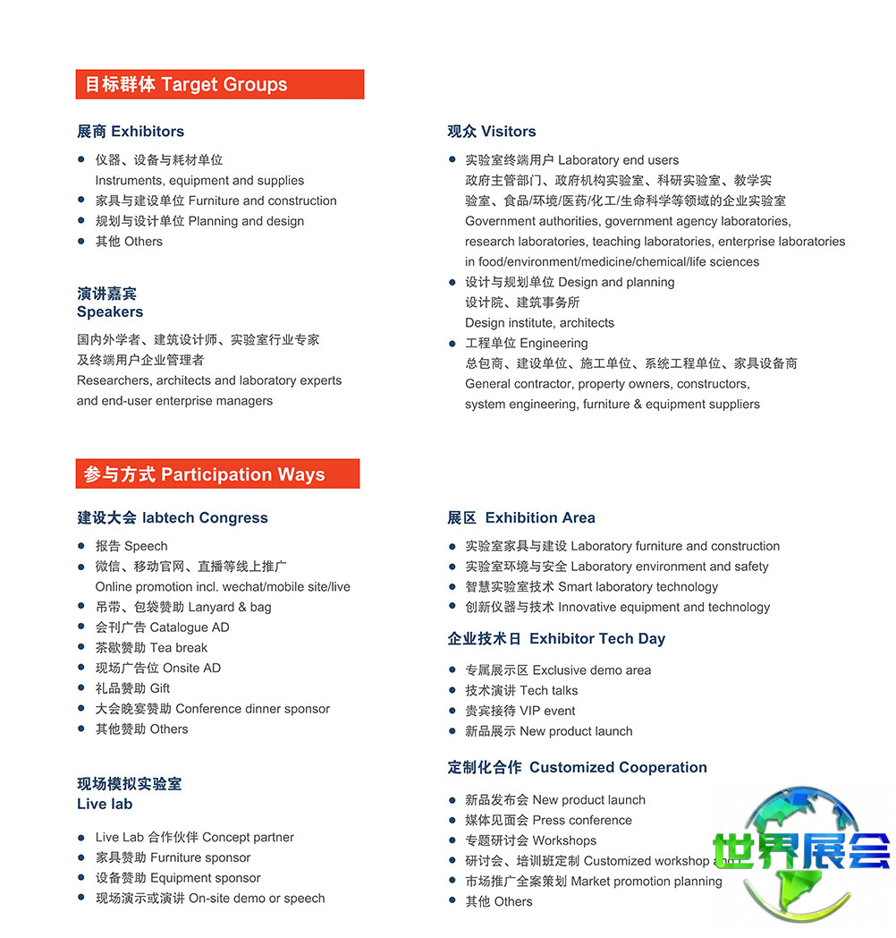 生命科学、生物科技与诊断领域:生物技术应用方案、生物技术仪器、生化试剂、技术支援服务、生物过程工程、诊断设备与试剂、生物医学应用、生命科学实验室技术
