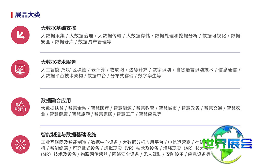 数字经济与数据要素展览是数博会的关键环节之一,将规划6个主题展馆,布展总面积约6万平方米。紧扣国家数据工作的重点方向,设置国际综合、前沿科技、数据资源、“数据要素”、数据安全、基础设施六大专业展区,集中呈现大数据领域的最新技术、创新产品、解决方案及应用实例。此外,展会期间还将安排企业自主发布等活动,为企业提供品牌推广与成果展示的窗口。
