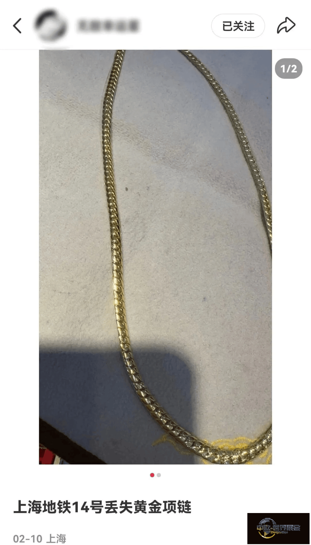 花费约10万元购入一条重81.5克的黄金项链,却在搭乘地铁时不慎丢失。最近,上海一位网友在社交平台发帖叙述了这件事,表示已经向警方报案。