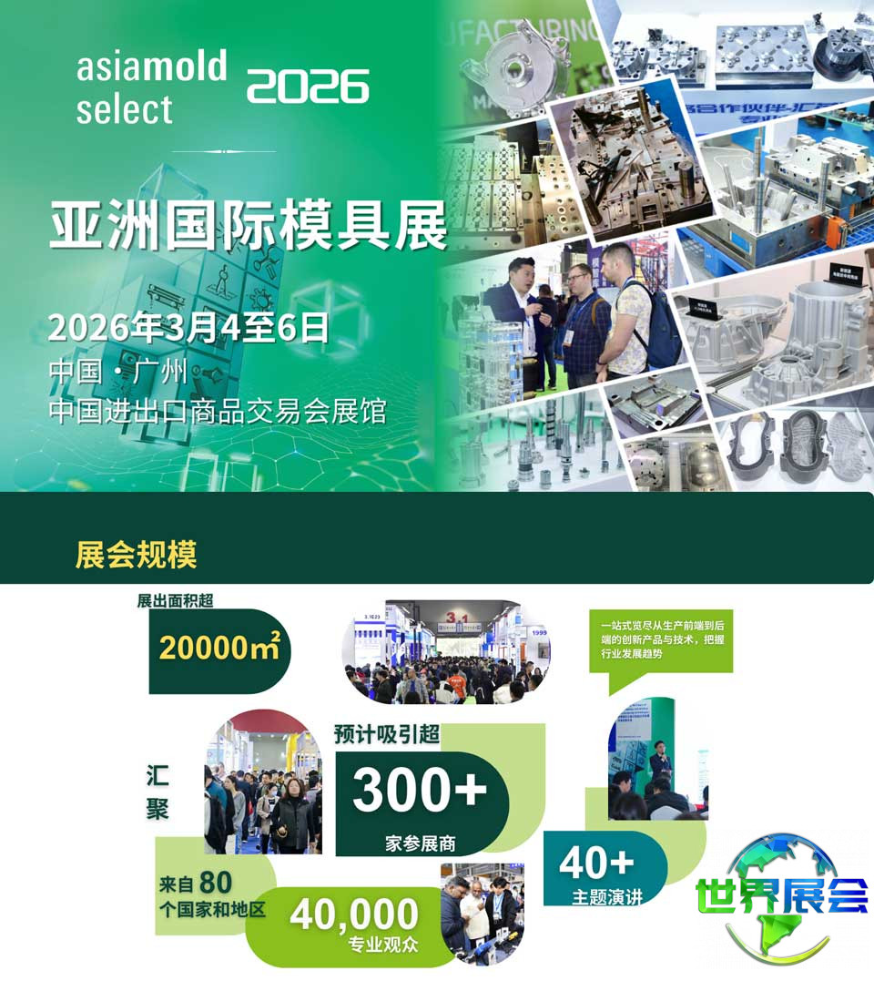 亚洲国际模具展览会(Asiamold)将以更强大的参展商队伍、更广泛的产业链涵盖、更深入的技术互动,为华南制造业发展增添新活力。