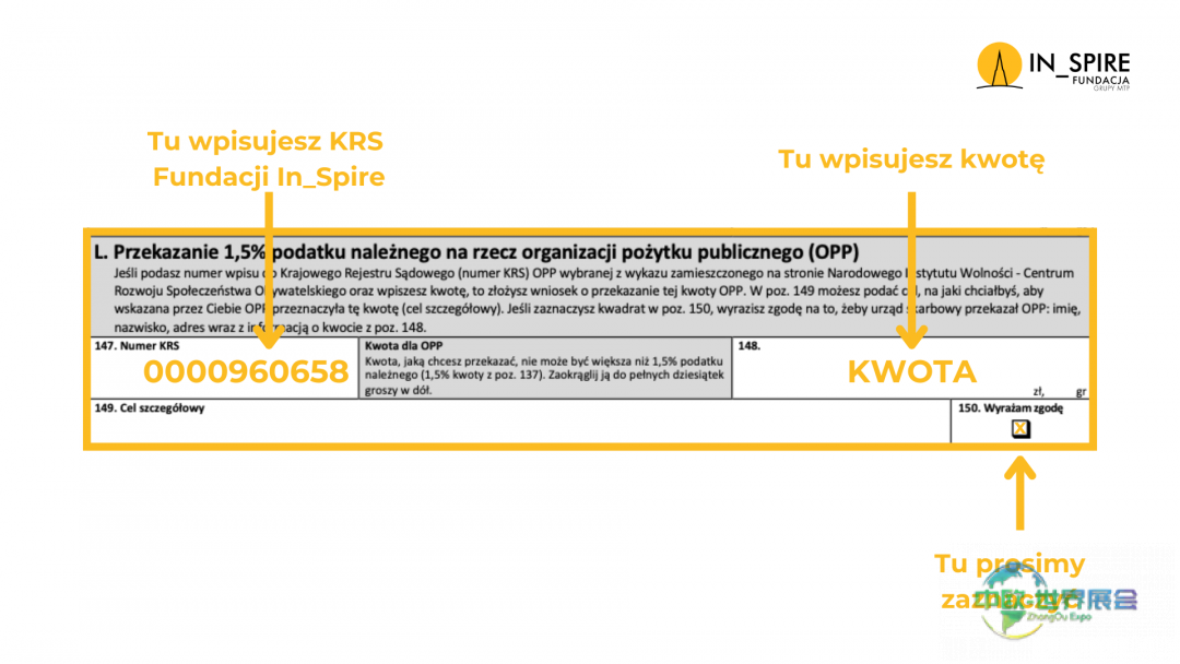 在年度PIT报税表的公共 benefit组织栏填写:KRS编号:0000960658