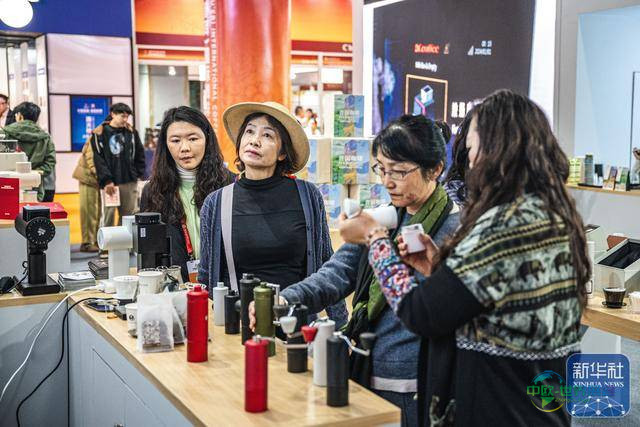 ↑ 12月5日,人们在活动现场查看咖啡产品。