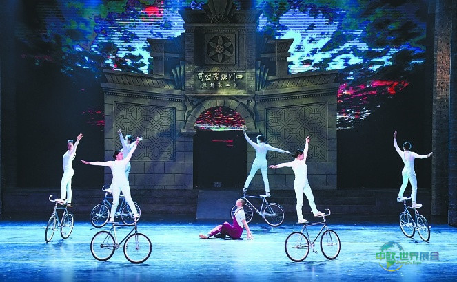 大型杂技情景剧《东方丝源》演出剧照。