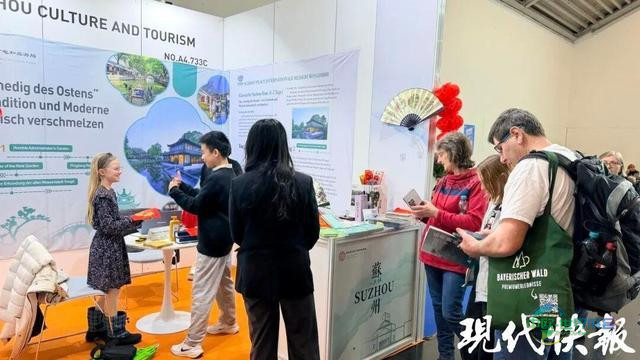 现代快报讯(记者 高达)从运河边的春节灯会到慕尼黑的展览盛会,苏州正借助文化桥梁,向全球讲述“各具特色、和谐共生”的现代故事。春节期间,2026年慕尼黑旅游博览会在德国慕尼黑拉开帷幕,由苏州市文化广电和旅游局带领的文旅代表团,向欧洲旅游行业及公众全面展示了苏州的古典园林、水乡古镇、非物质文化遗产以及精品入境旅游线路,成为展会上的亮点。