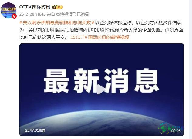 根据@CCTV国际时讯报道,以色列媒体披露,以方经过初步判断,认为美国与以色列针对伊朗最高领袖哈梅内伊及总统佩泽希齐扬的暗杀行动未能成功。此前,伊朗官方已证实两人均处于安全状态。