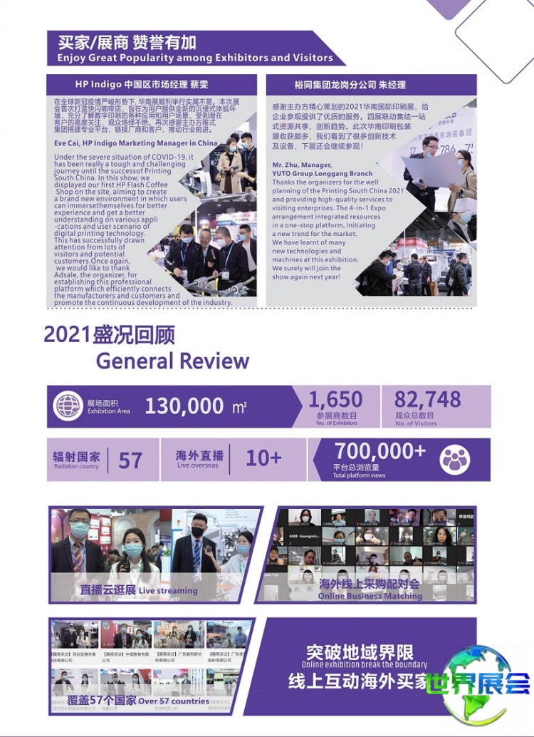 通过全球范围的精准邀请,助力参展企业打开国际合作通道,开拓全球市场,与国内外潜在客户进行直接洽谈,达成业务扩展与互利共赢。华南印刷展-广州印刷展(Printing South China)诚挚邀请您光临广州,共襄行业盛举!