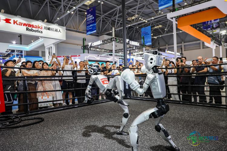 观众在2025世界智能产业博览会的智能机器人展区观看机器人拳击比赛(摄于2025年9月5日)。