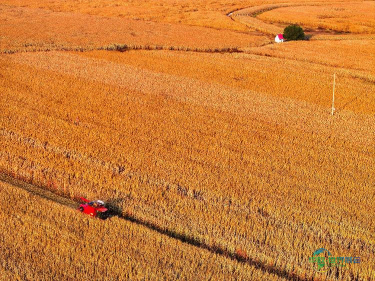 农机手驾驶收割机在内蒙古自治区通辽市科尔沁区丰田镇收割玉米(摄于2025年10月14日,无人机拍摄)。“十四五”时期,粮食总产量从2021年的1.37万亿斤增长到2025年的1.43万亿斤,连续两年稳定在1.4万亿斤的水平之上。