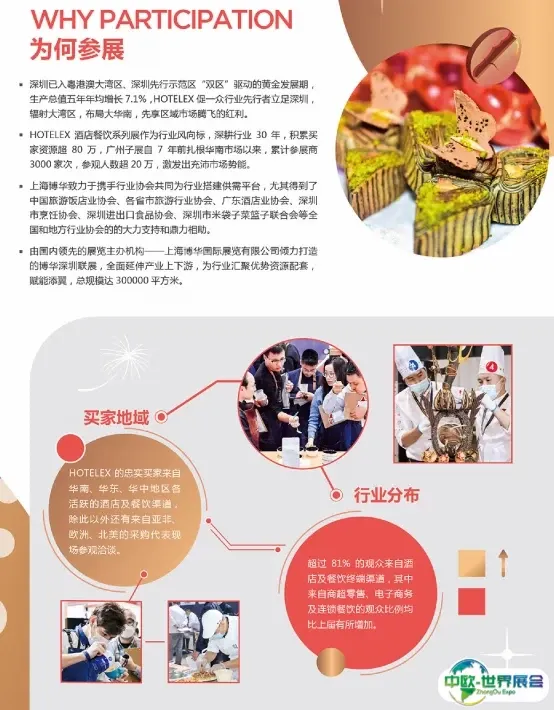 此外,深圳国际酒店及餐饮业展HOTELEX Shenzhen主办方为深圳展赋能添翼,全面延伸产业上下游,为行业汇聚优势资源配置,为华南地区带来一场更聚集、更专业的一站式采购盛会。
