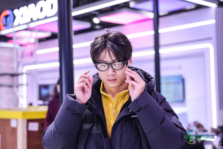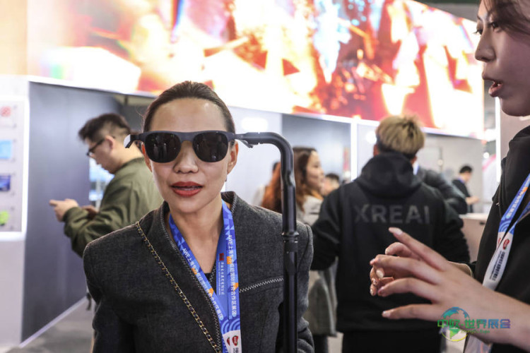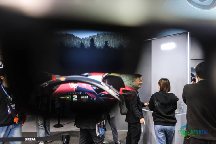 图中显示,在XREAL展位,参观者正在亲身体验一款旗舰级增强现实眼镜。