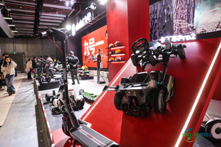 图中显示,九号公司(Segway-Ninebot)首次携众多智能出行产品参展,通过电动滑板车、平衡车、卡丁车及智能电动两轮车构成的完整产品系列,集中展现了其在智能短途交通领域的前沿科技与全面战略布局。