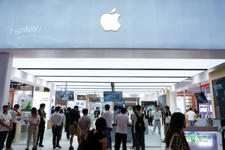 图为第三届中国国际供应链促进博览会上的苹果公司展台。新华社记者丁洪法摄