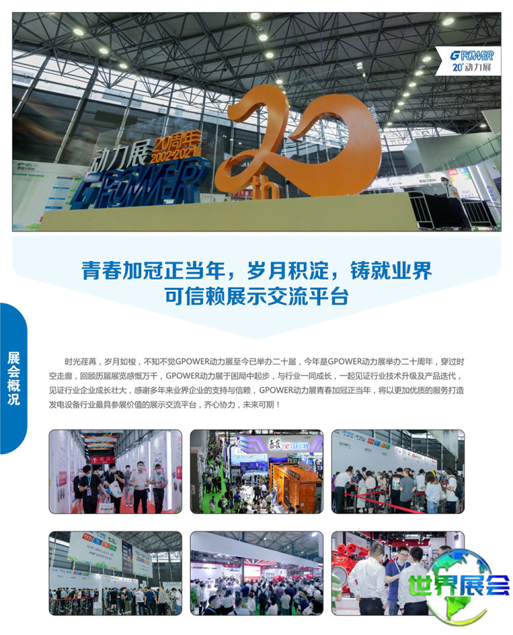 上海国际动力设备及发电机组展览会-动力展(GPOWER)诚邀您共赴GPOWER动力盛会!该展是动力设备与发电机组领域享有广泛声誉的品牌展览;是品牌推广、贸易拓展、前沿科技与信息交流的首选平台。全球领军企业新品发布的主要阵地。