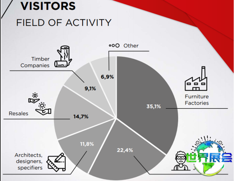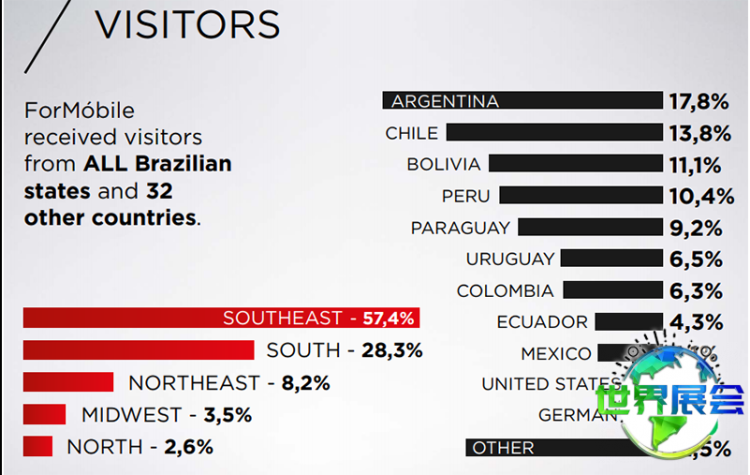 上届巴西圣保罗家具配件及木工机械展ForMobile的展览总面积达40000平方米,吸引了来自中国、迪拜、中国台湾、俄罗斯、哥伦比亚、美国、墨西哥、意大利、德国等地的750家参展企业,接待观众61800人次。