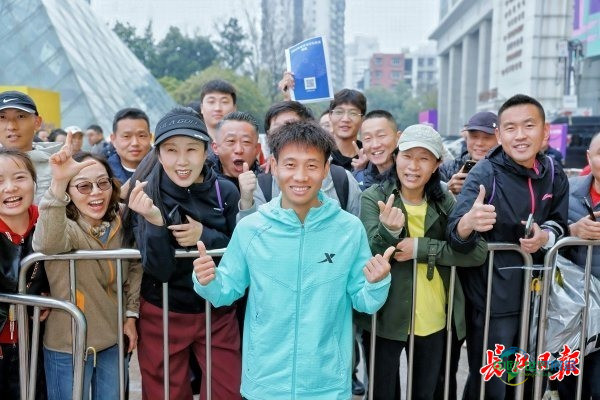 3月20日下午,2026武汉马拉松选手见面会举行,国内著名长跑运动员何杰亲临现场,与跑友近距离互动。记者胡冬冬 摄