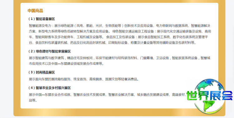 中国-东盟博览会主要展品类别: